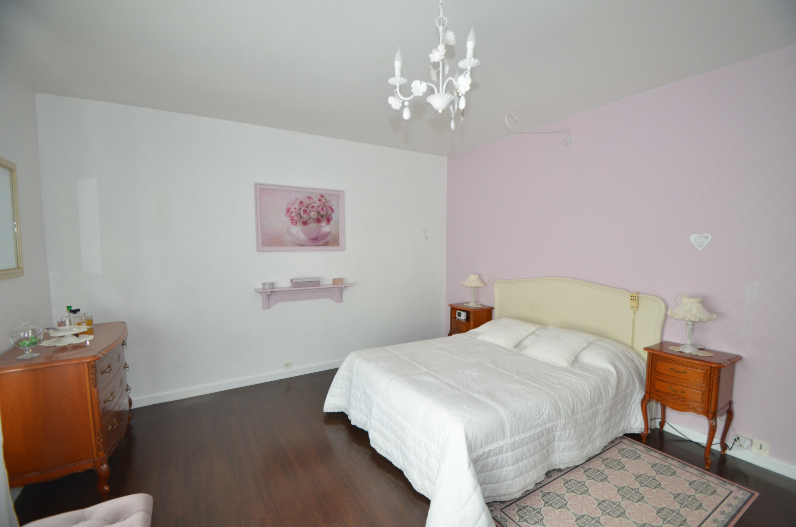 La maison est composée : d'un grand hall d'entrée, un grand salon, une salle à manger à part, une cuisine équipée, une salle d'eau, un wc, 3 chambres, un dressing, une cave, un garage.