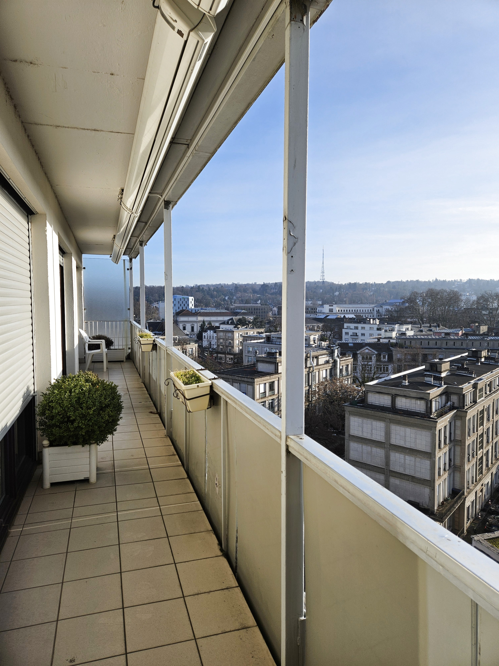 En visitant cet appartement vous serez séduit par les beaux volumes de chaque pièce, l'entrée spacieuse équipée de placards de rangement , les beaux parquets au sol et surtout une vue impressionnante, au dessus des toits de la ville. Vous balayerez du regard toute l'agglomération, d'est en ouest, sans aucune perturbation du panorama. Juste exceptionnel!