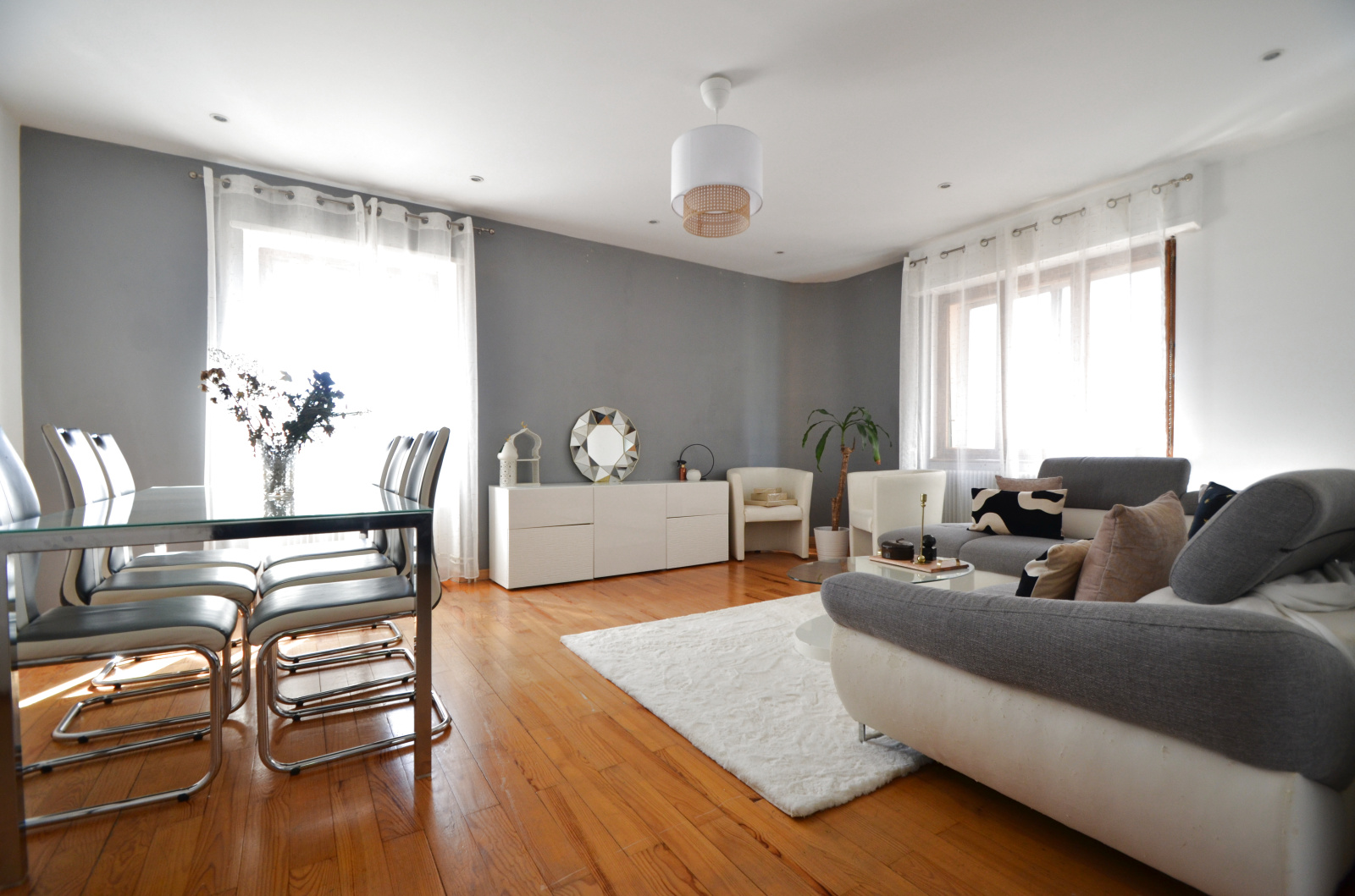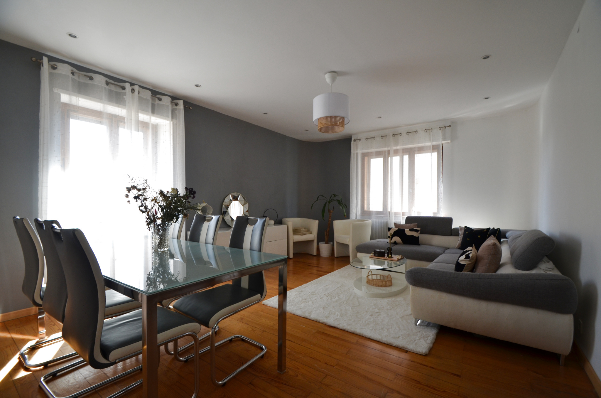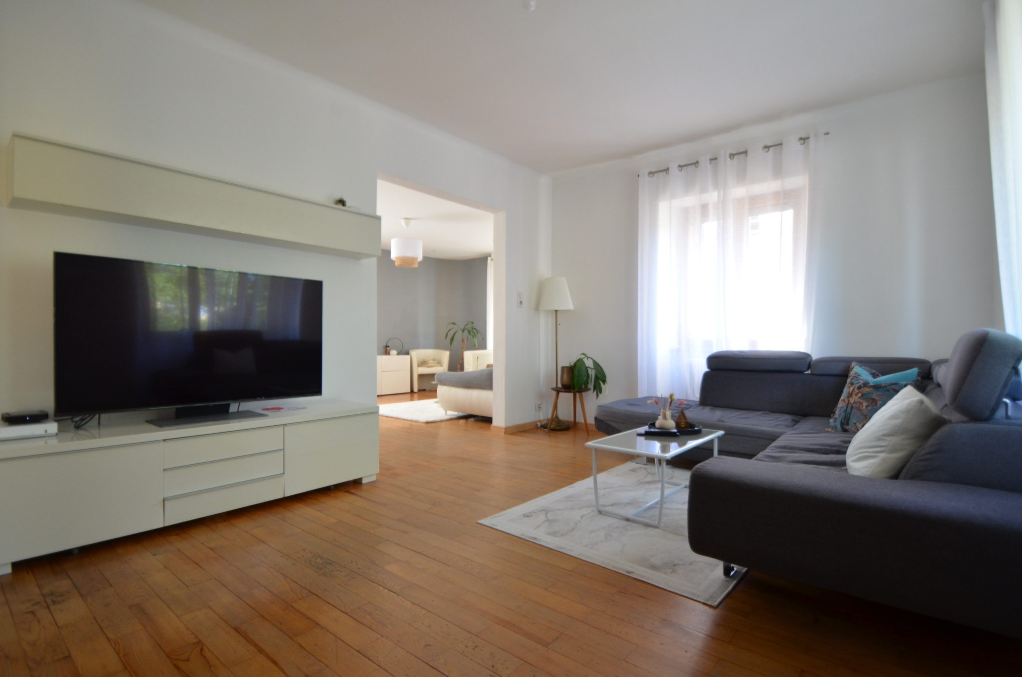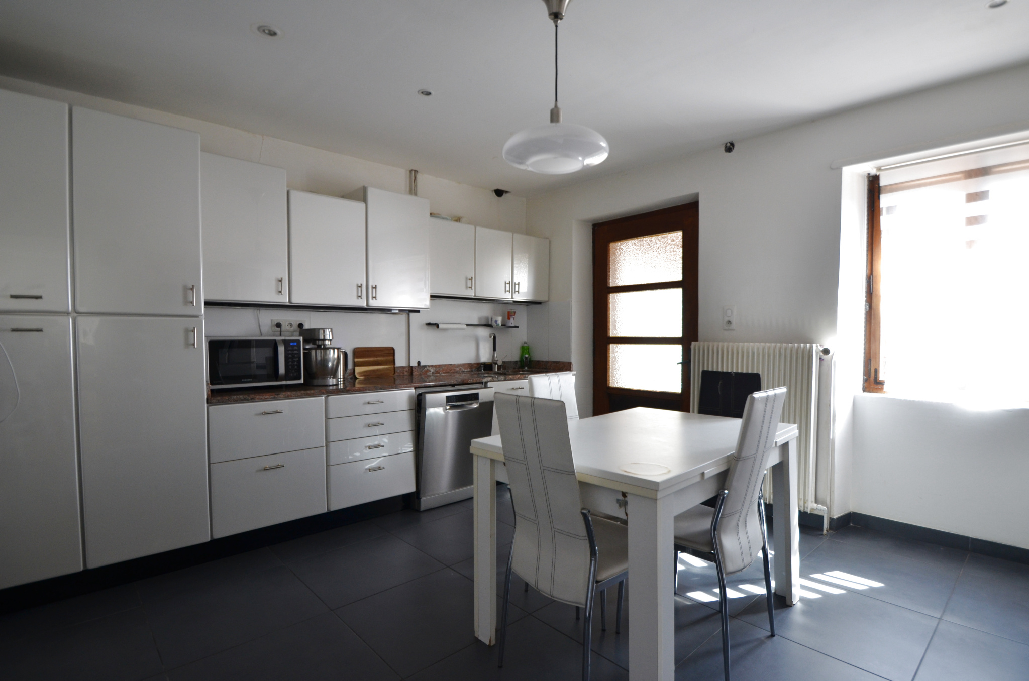 La maison est composée de : 2 salons, une grande cuisine de 18 m2 haut de gamme (Mentele), à l'étage, 4 chambres, une salle de bain.