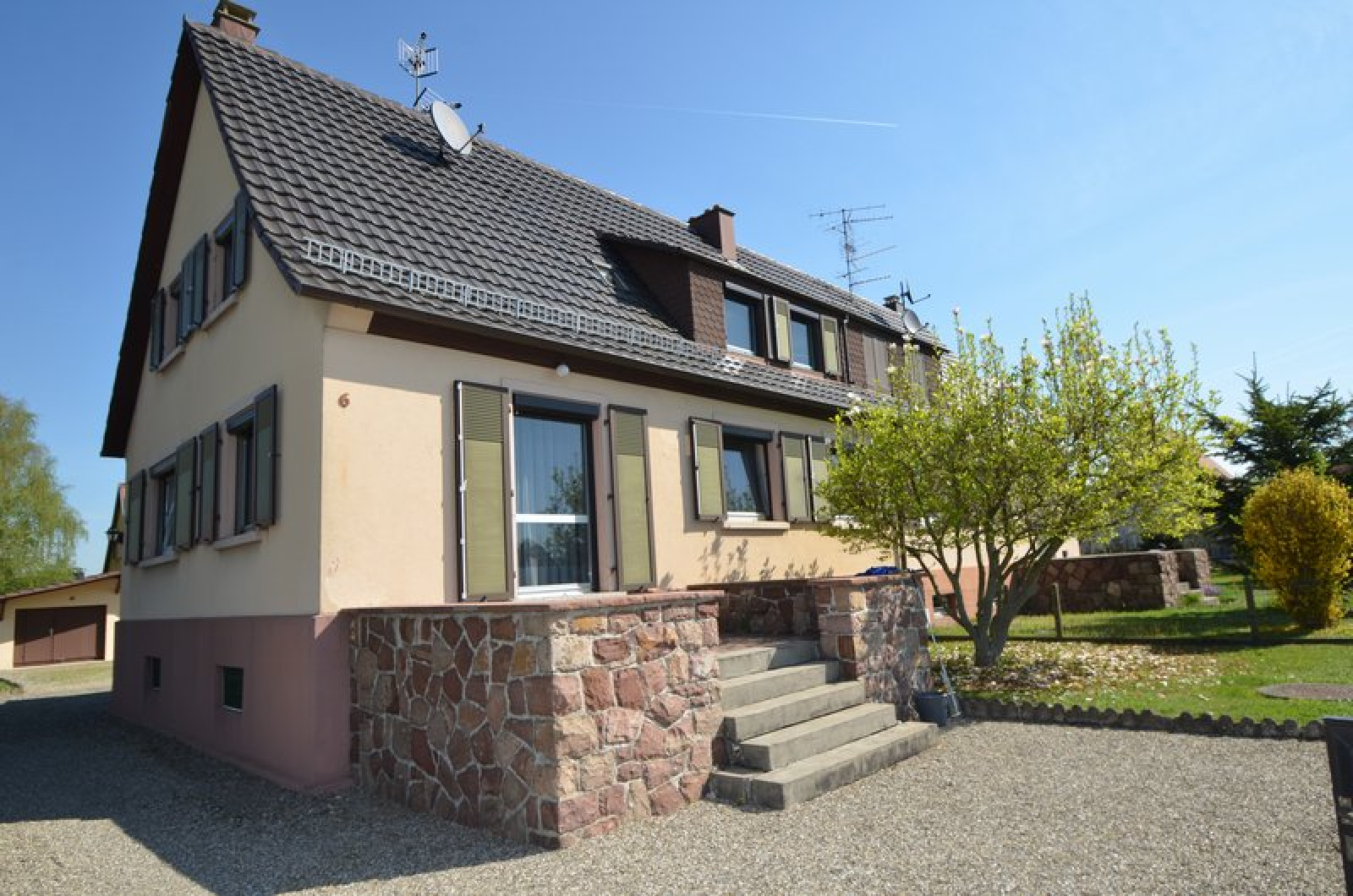 VALERIE LIEB vous propose de venir visiter, une maison des mines 120m² surface utile, construction des années 50, accolée d'un côté, sur 10 ares, avec 2 garages extérieurs. Le bien se situe à Ruelisheim, en limite de Wittenheim et Pulversheim. Maison parfaitement entretenue et emplacement idyllique: rue peu fréquentée, impasse à proximité immédiate des champs, calme absolu, quartier tranquille. Possibilité de vivre de plain pied car 1 chambre au rdc. ,Toiture, charpente, façade: pas de travaux- double vitrage - volets électriques neufs- installation électrique sécurisée- sdb au rdc avec douche à l'italienne- Kachloffa+ chauffage électrique avec accumulateurs, raccordement au gaz possible- murs extérieurs et toiture isolés. , ,Visites sur rdv, contactez VALERIE LIEB au 06.12.70.26.89 , ,
