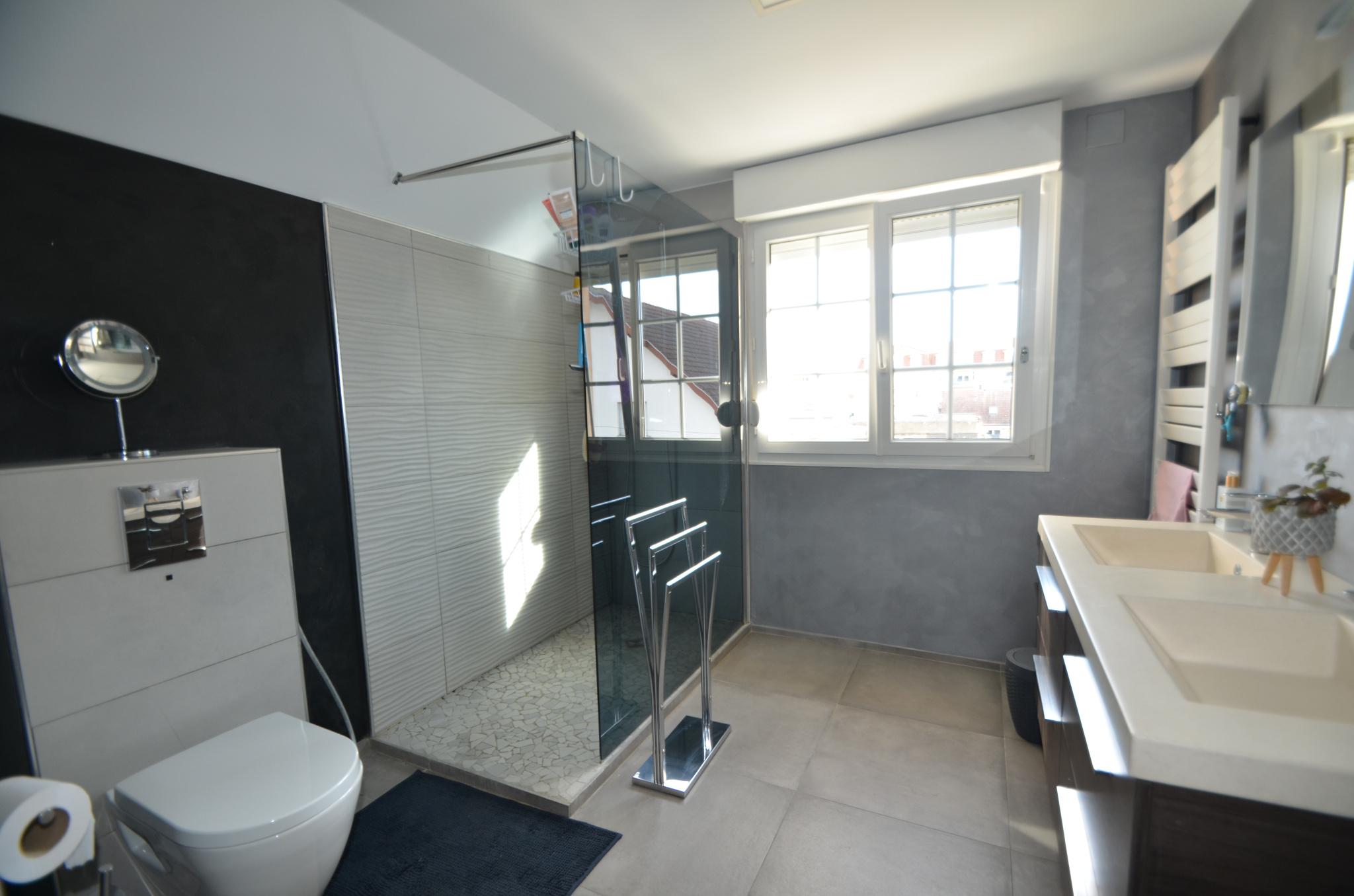 A l'étage: 3 chambres dont une suite parentale avec dressing, une salle de bain.
