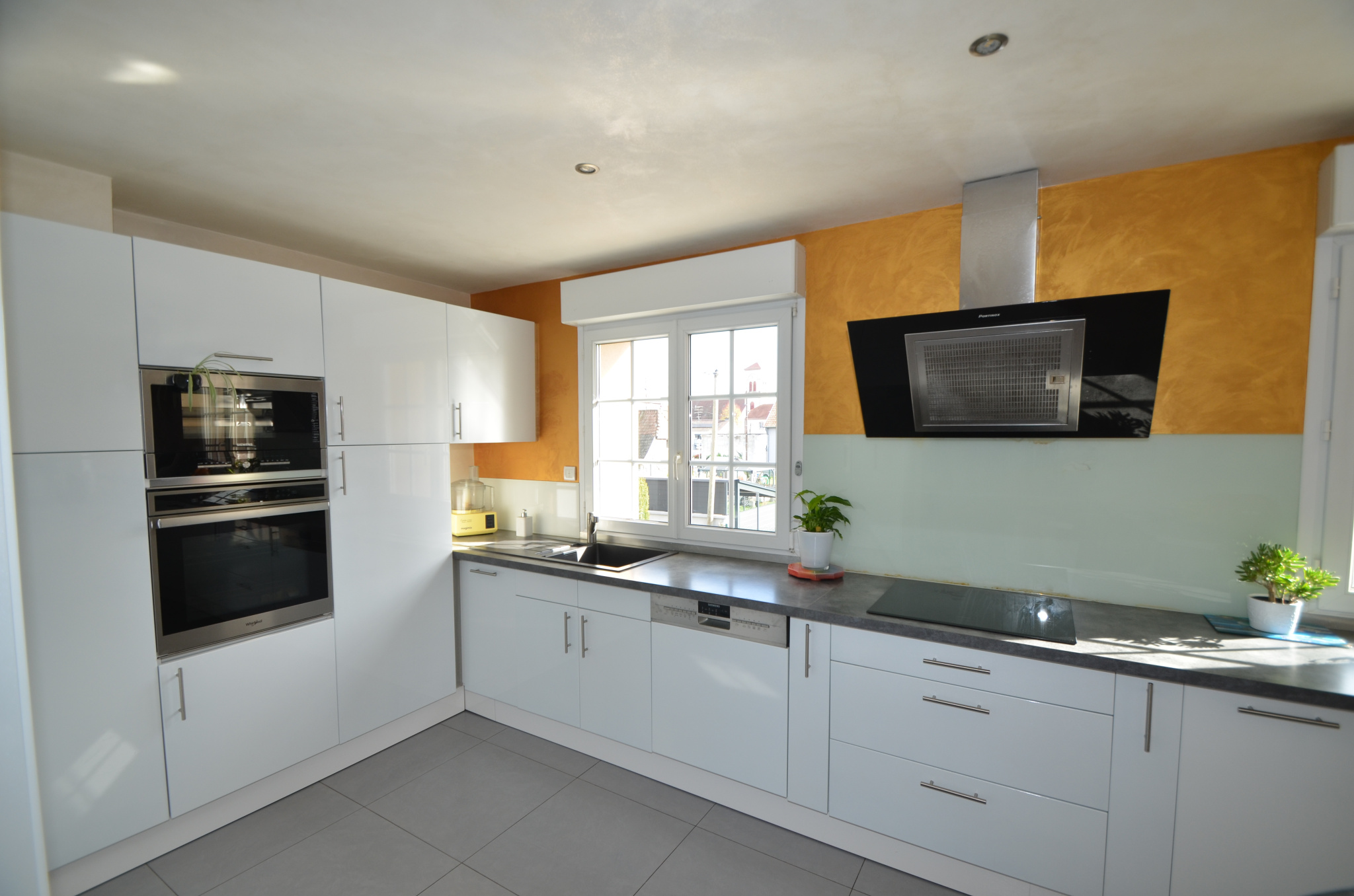 Au sous-sol: 2 garages frontaux, une pièce avec une cuisine aménagée, buanderie, le sous-sol est entièrement carrelé, les murs enduits.