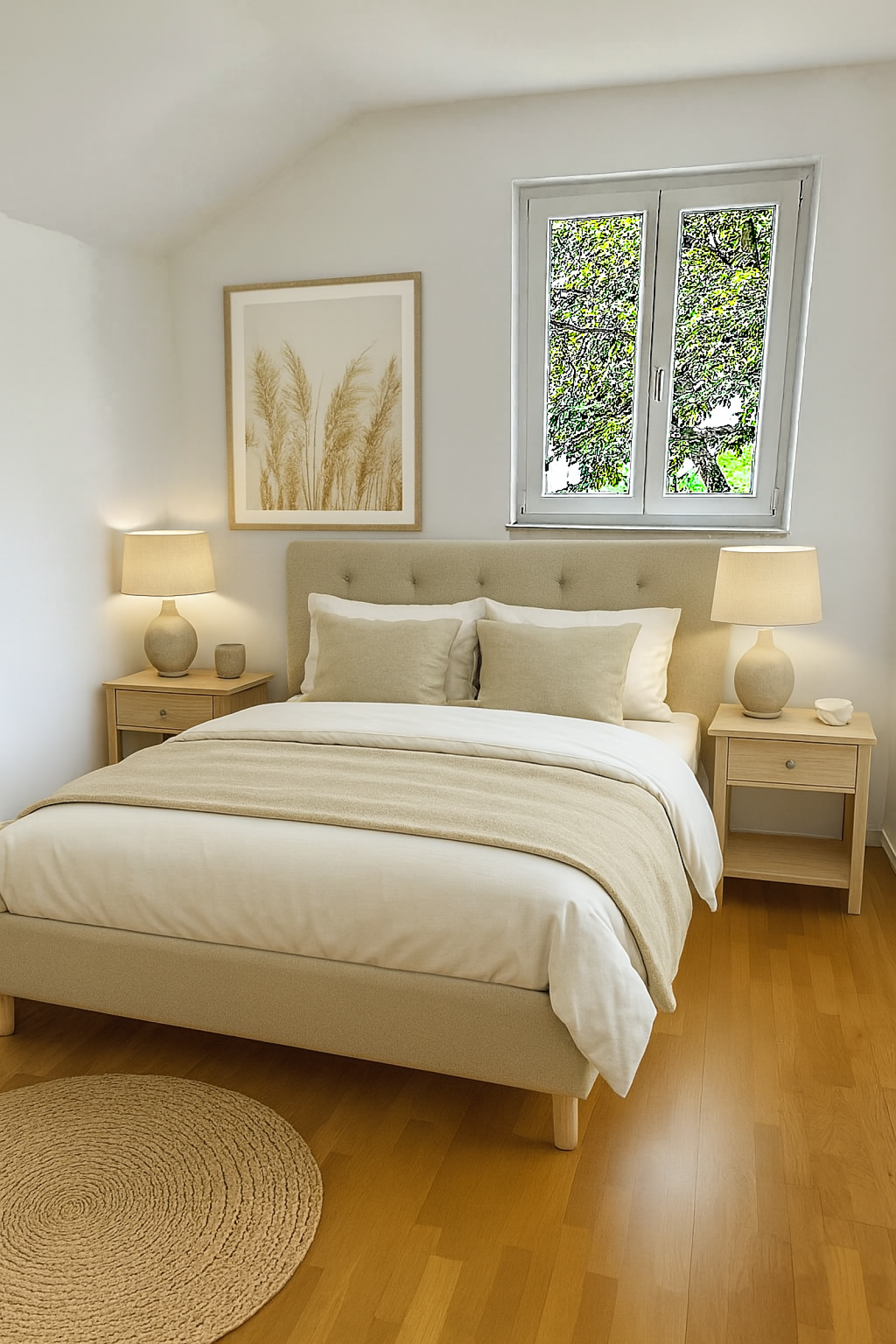 Au rdc : une cuisine neuve équipée, un salon/séjour, un bureau, une chambre, une salle de bain, un wc